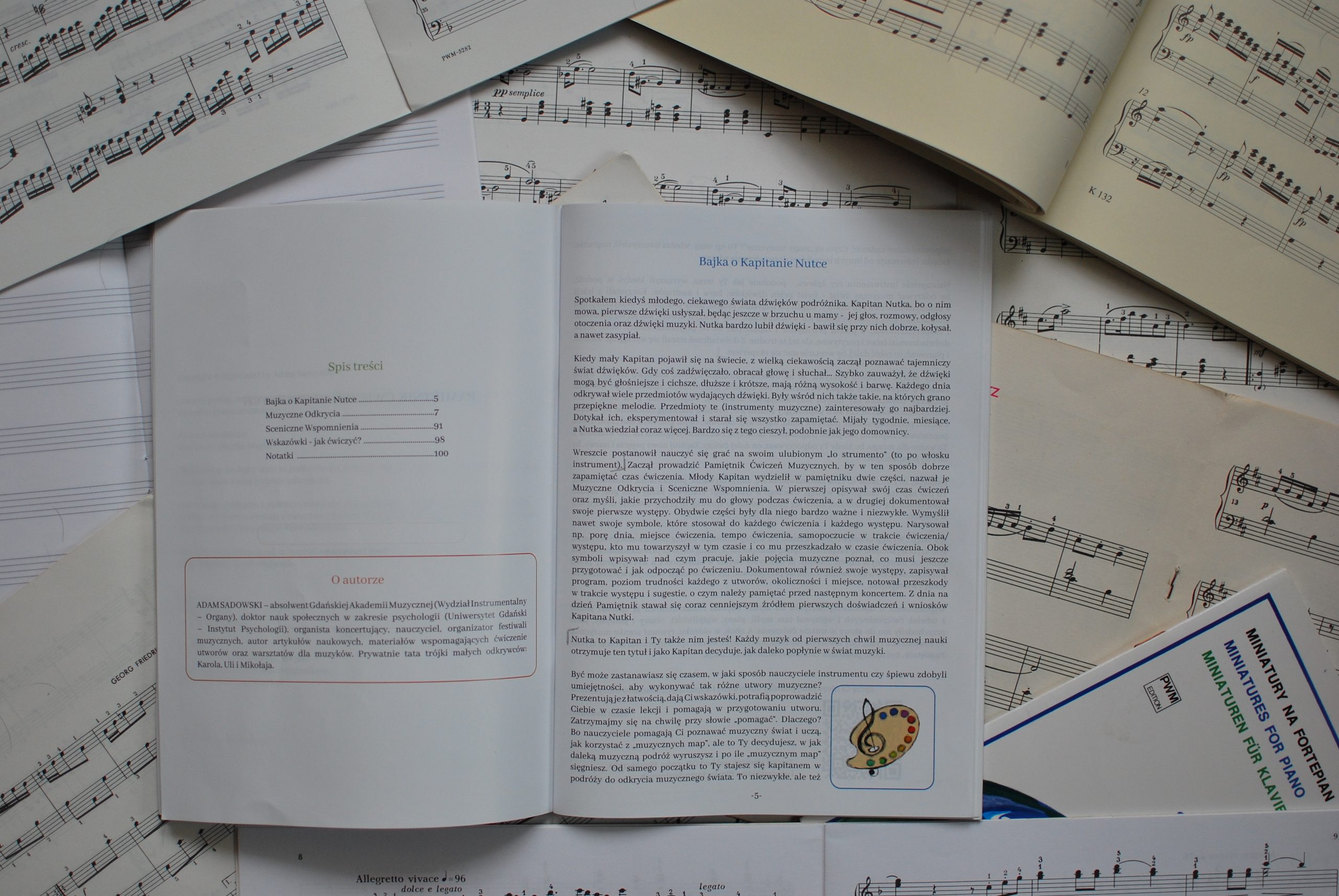 O tym, jak wygląda Pamiętnik Ćwiczeń Muzycznych i jak z niego korzystać, dowiemy się dzięki bajce o Kapitanie Nutce. Każdy muzyk od pierwszych chwil muzycznej nauki staje się kapitanem, bo to muzyk-kapitan decyduje, jak daleko wypłynie, by odkrywać muzyczny świat.